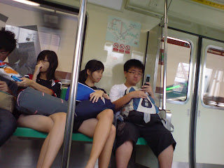 on the mrt, we took paul's funniest picture...we were talking very loudly and laughing like crazy...so paul made the 'shhh' expression and was taken by mingshen...SO FUNNY LAR!! after that, went to white sand mall to eat lunch before going to the chalet. the bus service like so super long lor...=.= the queue also super long...>.< saw some sec4 people...=D dint know so lucky one hehe...